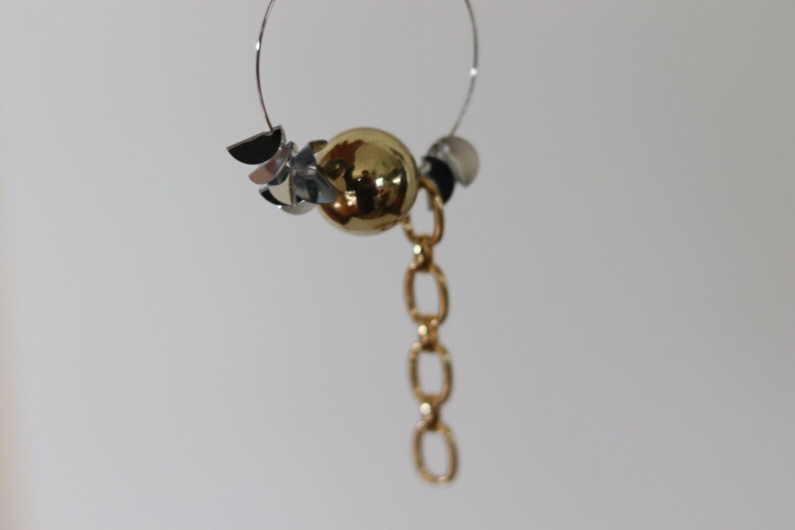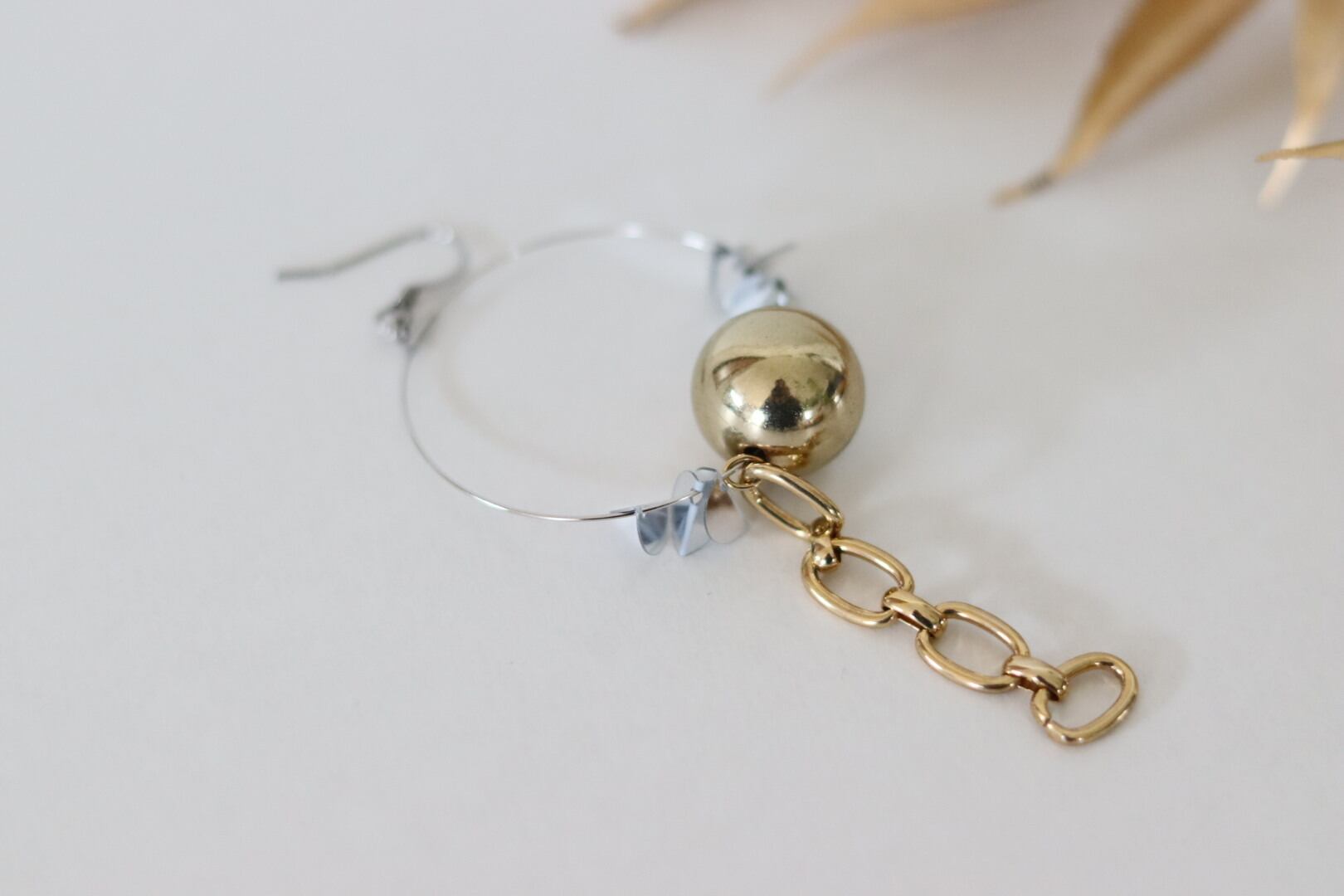 フープは華奢で、下の方にボリュームがあるので、顎ラインのボブスタイルや、ロングヘアの方が抜群に似合います。片耳用なので、お手持ちのピアスとコーディネートも楽しめます。