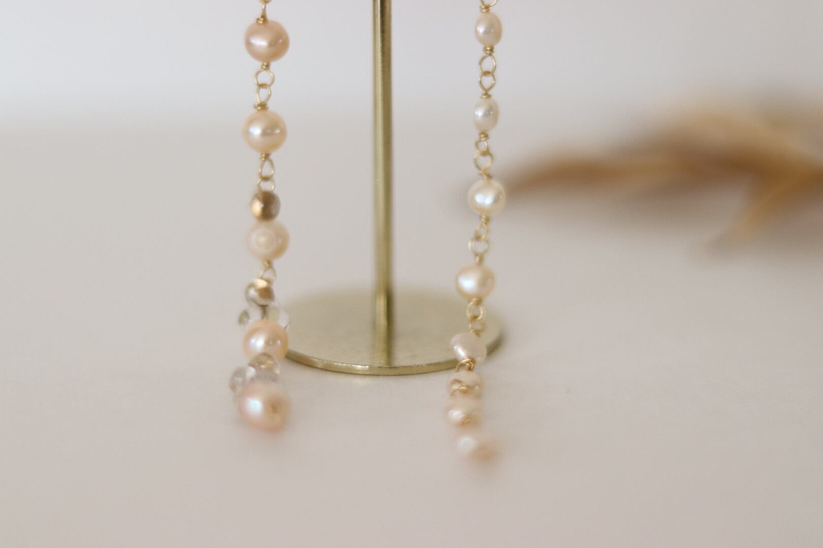 長く連なる淡水パールがタイトシルエットのドレスとも相性抜群です。