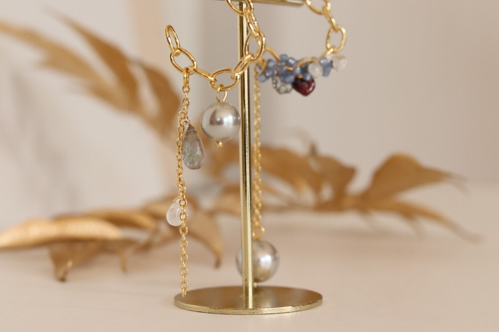 ・ガーネット、ラブラドライト、ブルームーンストーン、ガラスビーズ、他
