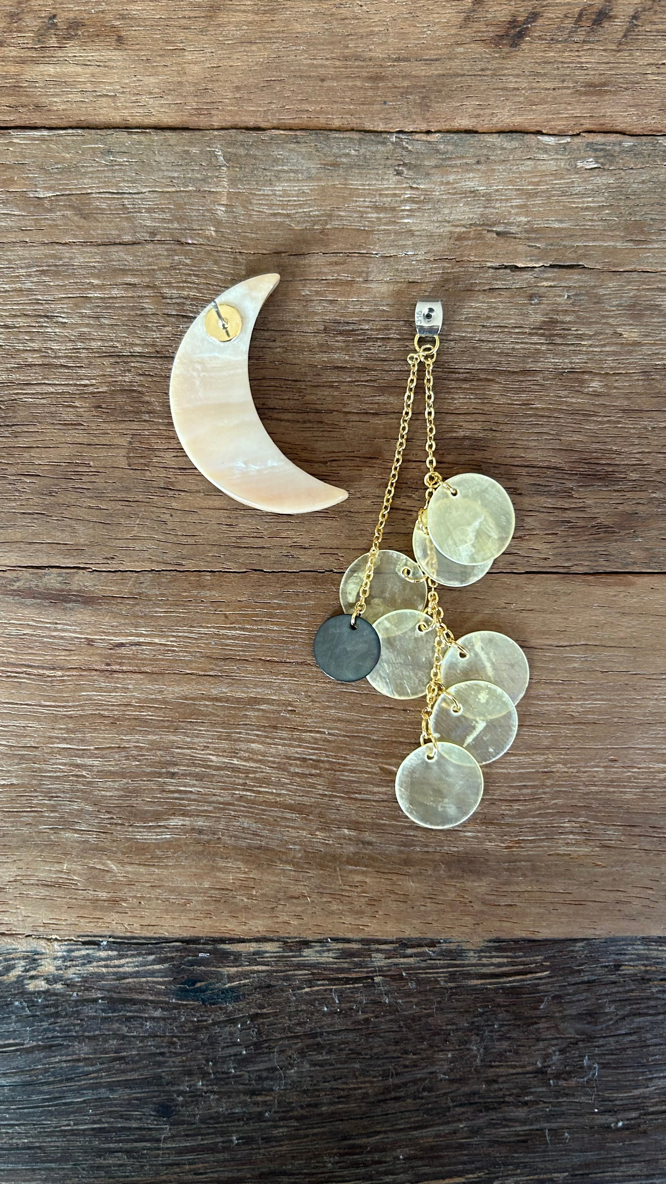 満月と新月のキャッチ : キャッチ部分(サージカルステンレス)シェル、チェーン16kgf